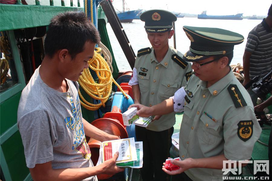 在世界紅十字日來臨之際,海警三支隊(duì)醫(yī)療小分隊(duì)來到清瀾港環(huán)球碼頭,軍醫(yī)和衛(wèi)生員登上漁船并發(fā)放健康手冊(cè),為轄區(qū)漁民測(cè)量了血壓、血脂和血糖。此外,海警官兵還結(jié)合船上生活情況,向漁民講解防疾、健康保健等方面的基本常識(shí),提高他們的科學(xué)防病意識(shí)和能力。此次活動(dòng)共為漁民體檢167人,贈(zèng)送了云南白藥氣霧劑、傷濕止痛膏和復(fù)方甘草口服溶液等藥品價(jià)值1000元,發(fā)放健康手冊(cè)260份,真正為漁民架起了一座健康之橋,增進(jìn)了警民魚水情,得到轄區(qū)漁民一致好評(píng)。