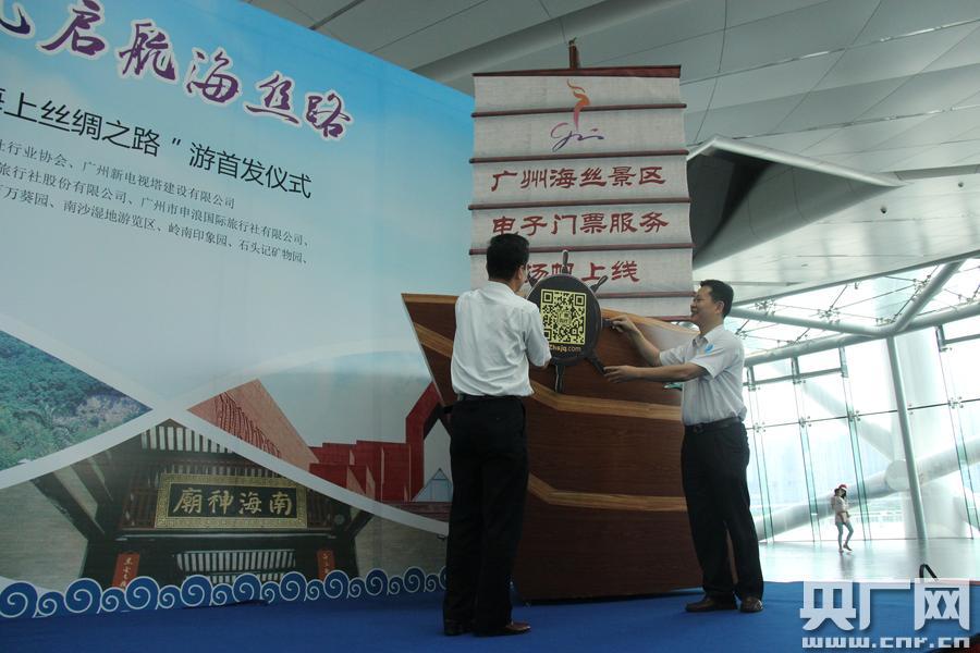 當(dāng)日是“中國旅游日”。廣州市旅游局負(fù)責(zé)人向廣州首批十二家“海上絲綢之路旅游景區(qū)(點(diǎn))”授牌。分別是:西漢南越王博物館、南越王宮博物館、鎮(zhèn)海樓、光孝寺、懷圣寺、圣心大教堂、清真先賢古墓、南海神廟、黃埔古港古村歷史文化旅游區(qū)、蓮花山、寶墨園、南沙天后宮。