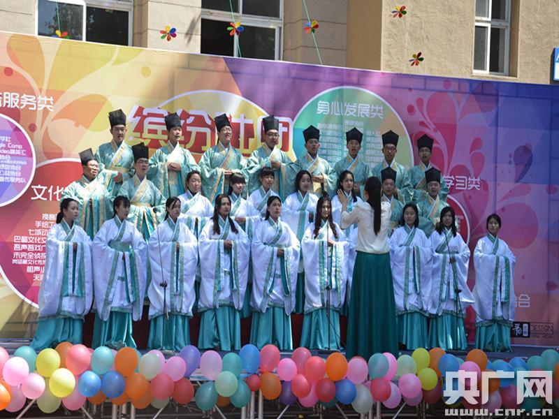 大連理工大學(xué)吟唱團(tuán):吟詠古韻唱誦經(jīng)典央廣網(wǎng)大連6月4日消息(記者田彤 張四清 通訊員 許可心 陳夢陽 攝影)“勝日尋芳泗水濱,無邊光景一時新!痹(jīng)熟悉的古詩詞配上悠揚(yáng)的旋律,迸發(fā)出別樣的活力。他們從典籍中走來,霓裳曳廣帶,袖一縷盛唐氣象,帶三分大宋煙雨。日前,大連理工大學(xué)吟唱團(tuán)在第七屆“嘉年華”完成了他們自成立以來的第一次正式亮相,低吟淺唱間,一展中華傳統(tǒng)文化的底蘊(yùn)風(fēng)范。 2014年11月,大連理工大學(xué)“文苑”活動第四期邀請大連市吟唱團(tuán)來校演出。吟詩靜心,唱詞怡情,抑揚(yáng)頓挫,起承轉(zhuǎn)合,唱句間流淌出的悠悠古韻抓住了現(xiàn)場很多同學(xué)們的心。演出結(jié)束后,大連理工大學(xué)團(tuán)委副書記崔強(qiáng)就帶領(lǐng)幾名對吟唱十分感興趣的學(xué)生,一起投入到了吟唱團(tuán)的組建工作中。學(xué)校還邀請國學(xué)名家--大連圖書館館長名譽(yù)館長張本義先生前來進(jìn)行了主題為“教你如何讀經(jīng)典”的講座,激發(fā)了很多同學(xué)躍躍欲試的好奇心。吟唱團(tuán)的王聽香同學(xué)第一次知道吟唱這種表演形式就是在這場講座上!霸谖衣牭綇埍玖x先生吟誦的詩詞時,我好像忽然懂得了古人在詩詞中獲得的樂趣,當(dāng)一首詩被吟誦出來之后,它就擁有了新的生命。” 大連理工大學(xué)團(tuán)委副書記崔強(qiáng)表示,希望通過這種形式讓同學(xué)們從新媒體時代碎片化的信息閱讀里走出來,能靜下心,回歸到傳統(tǒng)文化的本真和沉穩(wěn)中去。大連市圖書館名譽(yù)館長張本義先生在談到吟唱對大學(xué)生認(rèn)識傳統(tǒng)文化作用時說道:“吟誦,即吟詠誦讀,它首先是一種學(xué)習(xí)方法,其次是古人創(chuàng)造的一種藝術(shù)形式。大學(xué)生學(xué)習(xí)吟誦一方面可以深入理解經(jīng)典詩文的內(nèi)涵,另一方面在詩教樂教中培養(yǎng)高雅的審美情操。誦讀經(jīng)典是學(xué)習(xí)體驗(yàn)傳統(tǒng)文化的最重要的途徑,是學(xué)習(xí)傳統(tǒng)文化的一把鑰匙。大學(xué)生學(xué)習(xí)吟誦可以加深當(dāng)代學(xué)子對傳統(tǒng)文化精髓的理解與感性認(rèn)知,更好的實(shí)現(xiàn)對傳統(tǒng)文化的繼承與發(fā)揚(yáng)! (央廣網(wǎng)記者 張四清 攝)
