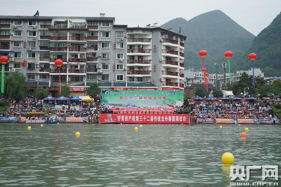 央廣網(wǎng)隸屬黔東南州6月21日消息(記者王珩 孟海 陳玉 通訊員楊通航攝)“咚、咚、咚……”, 20日,氵舞陽(yáng)河面百舸爭(zhēng)流,龍舟飛渡,戰(zhàn)鼓雷鳴,貴州省鎮(zhèn)遠(yuǎn)縣第三十二屆傳統(tǒng)龍舟文化節(jié)隆重舉行。當(dāng)天,河兩岸觀眾加油鼓勁,運(yùn)動(dòng)健兒揮漿劈浪,奮力前行,向人們展示鎮(zhèn)遠(yuǎn)速度。