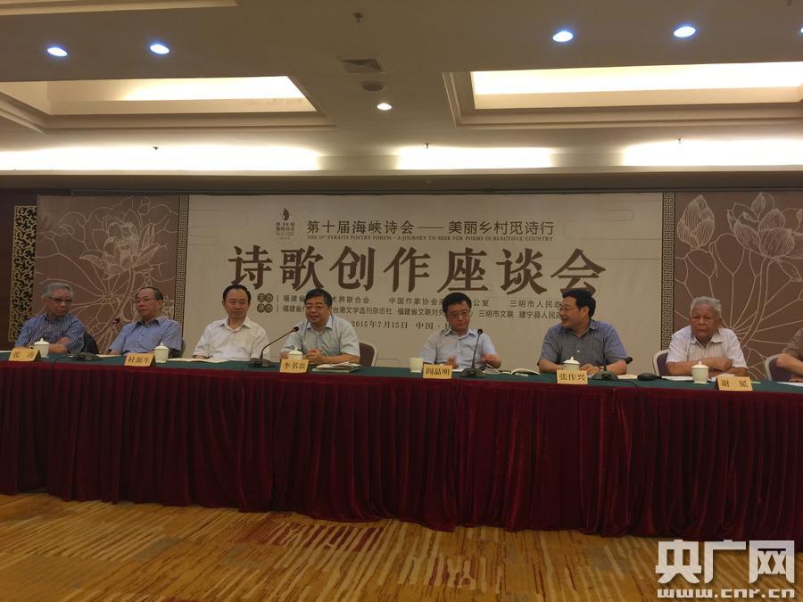 央廣網(wǎng)7月15日建寧消息(記者洪波 張子亞)第十屆“海峽詩(shī)會(huì)-美麗鄉(xiāng)村覓詩(shī)行”今天福建建寧開(kāi)幕。本屆“海峽詩(shī)會(huì)”由中國(guó)作家協(xié)會(huì)港澳臺(tái)辦公室、福建省文學(xué)藝術(shù)界聯(lián)合會(huì)、三明市人民政府共同主辦,來(lái)自海峽兩岸的近三十位詩(shī)人蒞會(huì)。
