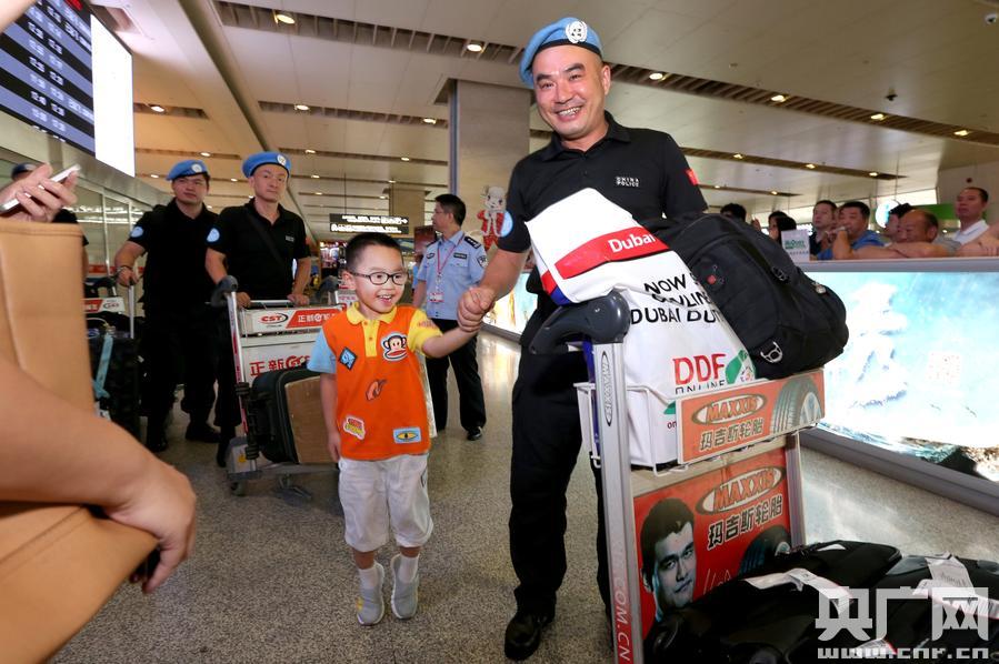 劉志民是武漢市公安局法制處民警,也是中國第十三支赴利比里亞維和警隊的成員之一。昨日,這支由湖北單獨組建的維和警隊,圓滿完成在利比里亞為期一年的維和任務(wù),經(jīng)廣州轉(zhuǎn)機返鄂。警隊共19人,由來自省公安廳、武漢、黃石、宜昌、鄂州等地的民警組成,其中武漢民警占14人。
