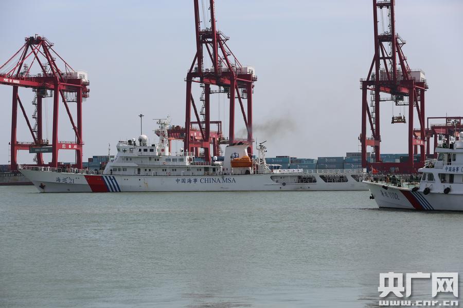 央廣網(wǎng)?8月6日消息(記者許云 通訊員吳坤耀攝)8月5日上午7點30分,“海巡21”和“海巡1102”從?诤J禄卮a頭出發(fā)和北海海事局的“海巡10181”、“海巡10122”一起對?凇焙?蜐L船航線進行聯(lián)合巡航。