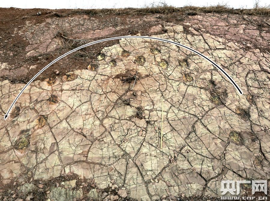 山東諸城發(fā)現(xiàn)世界首例恐龍足跡180度轉(zhuǎn)彎化石