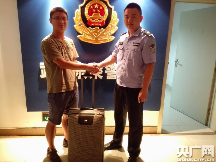 民警得此消息后,迅速開(kāi)車(chē)前往車(chē)庫(kù)將行李箱取回。9月3日凌晨1時(shí)許,在乘務(wù)四大隊(duì)值班室內(nèi),失主小胡當(dāng)面清點(diǎn)了箱內(nèi)物品后,民警將行李箱發(fā)還失主。失主小胡十分激動(dòng),終于能夠順利去青島參加交流活動(dòng)了。