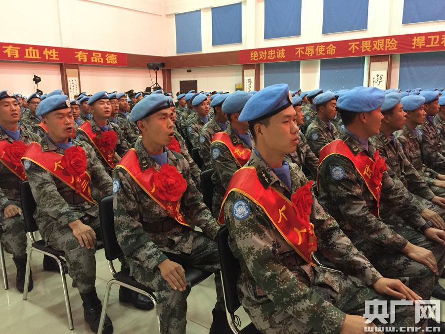 中國第十七批赴利維和部隊(duì)接受表彰的151名維和官兵(央廣網(wǎng)記者 韓曉 攝)