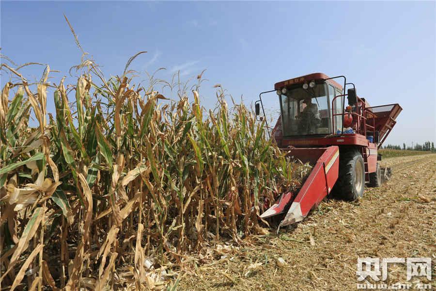 機械采收玉米 (央廣網(wǎng)發(fā) 董基春攝)