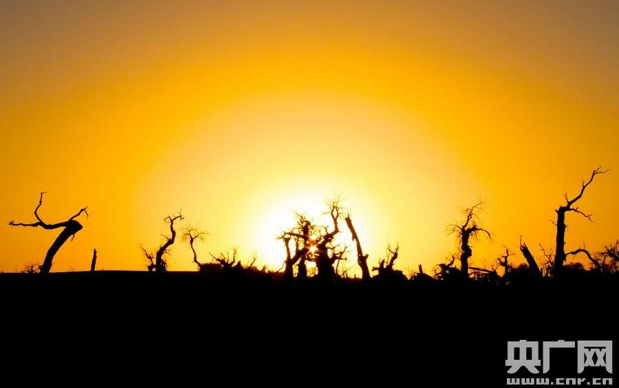 央廣網(wǎng)10月19日消息(記者黎政祥 吳弘樂 韓曉)內(nèi)蒙古額濟納旗作為世界僅存三處胡楊生長區(qū)之一,迎來了這里的最美金秋季!爸袊~濟納國際金秋胡楊生態(tài)旅游節(jié)”今年迎來了第十六個年頭,旅行者們紛紛不遠萬里,來此一睹胡楊林的萬千風(fēng)情。胡楊是世界上最古老的楊樹品種,素有“生而千年不死,死而千年不倒,倒而千年不朽”的美譽。樹葉在深秋中染成金黃色、橙紅色,與死而不朽的胡楊樹枝交相呼應(yīng),形成絕美的勝景。