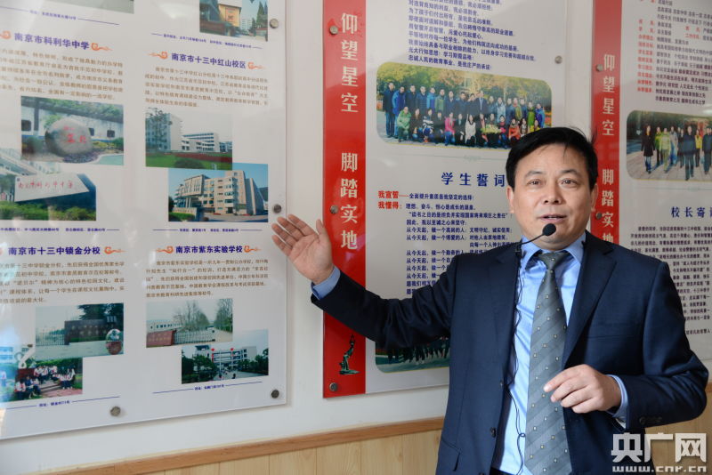 南京市第十三中學(xué)校長屠桂芳向記者介紹學(xué)校相關(guān)情況