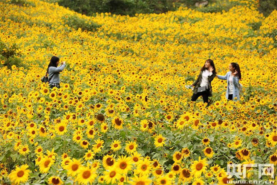“我還是第一次親眼看到這種向日葵花,這么多花兒,漂亮極了!庇慰蛥菭N周末和家人一起來此體驗鄉(xiāng)村生活,看著眼前的鮮花,吳燦興奮地說。美麗的花海吸引了眾多游客拍照留影,大家拿著相機或手機,置身于花海中擺出各種造型,徜徉忘返。而花谷中還配備有食宿一體的生態(tài)農(nóng)家庭院,賞花長廊和水文景觀,可為游客帶來“美在其中”的別樣體驗。