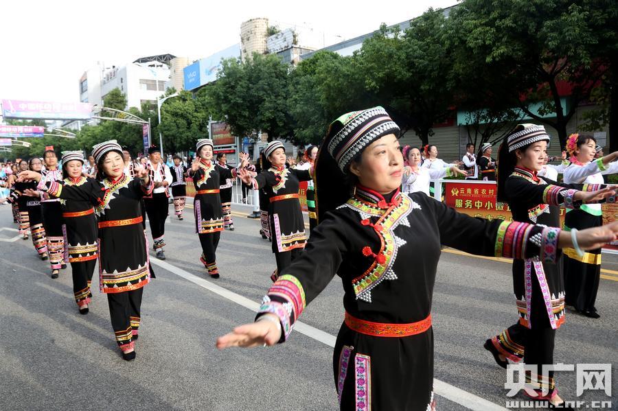 11月3日,云南省耿馬傣族佤族自治縣成立60周年慶祝大會(huì)舉行。傣、佤、拉祜、傈僳、德昂等各族人民穿起民族服飾盛裝,用民族音樂(lè)和舞蹈慶祝。(央廣網(wǎng)發(fā) 李騰飛 攝)
