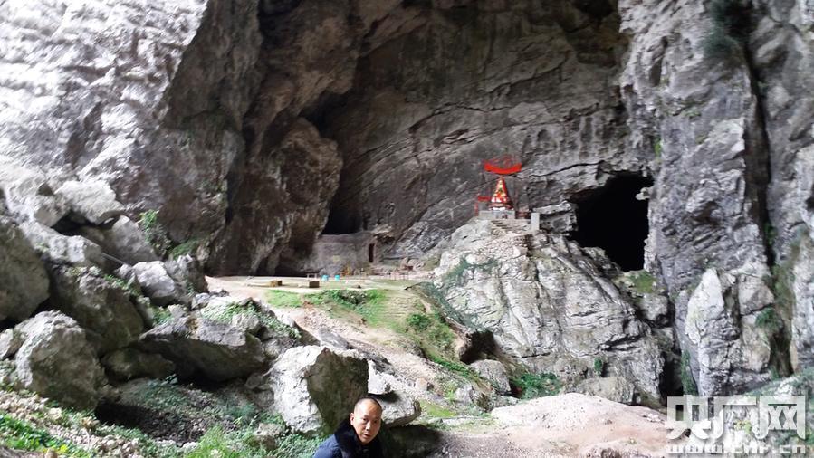 太虛洞位于距離石阡城南2.5公里的燕子巖山腹中。攀上燕子巖的數(shù)百步石階后。眼前豁然開朗,極為寬闊,約百米的洞口闖入眼簾!昂么蟮纳蕉囱!”科考隊(duì)員們異口同聲地感嘆道。