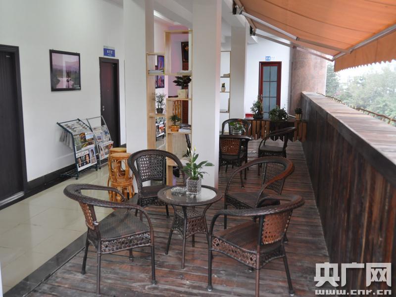 從一樓大廳進入展區(qū),民間工藝展區(qū)陳列著剪紙、銀飾、織布、毯子等獨具特色的德宏民間手工藝品和農(nóng)副產(chǎn)品。在大廳中央,設(shè)置有圓弧型的圖書閱覽區(qū),主要陳列德宏民族出版社“國門書社”有關(guān)文學、醫(yī)藥、歷史、地理、緬文、傣文、景頗文、傈僳文等書籍、報刊、雜志以及音像制品,提供免費閱讀和欣賞。圓弧的書架中心擺放著傣族人自己編織的藤椅,為游客提供一個靜怡舒適的觀影和學習環(huán)境。而在大廳外部的露天平臺,折疊式遮陽棚、獨特的木條地板、鏤空的隔斷、竹編的桌椅,為旅客學習交流、休閑觀景提供優(yōu)質(zhì)保障。