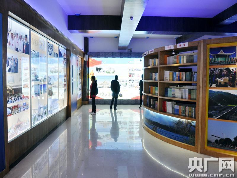 央廣網(wǎng)德宏11月30日消息(記者李騰飛 通訊員何星余)5個文化展區(qū)、7項服務性功能、3000余冊藏書、500余張珍貴照片、300余件原創(chuàng)影像作品……經(jīng)過一年的漫長等待,瑞麗中緬文化展示廳暨國門書社近日終于亮相瑞麗國門。這個全國唯一一個建立在國門之上的書社開放當日,就迎來中緬兩國前來參觀、借書、休閑的群眾200余人。