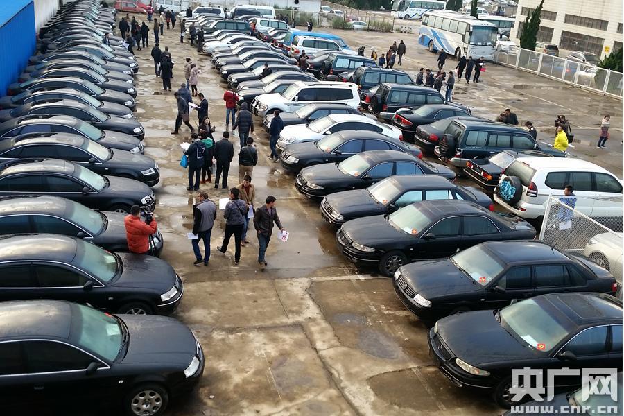 待拍賣車輛以黑色公務(wù)用車為主(央廣網(wǎng)記者 李健飛 攝)
