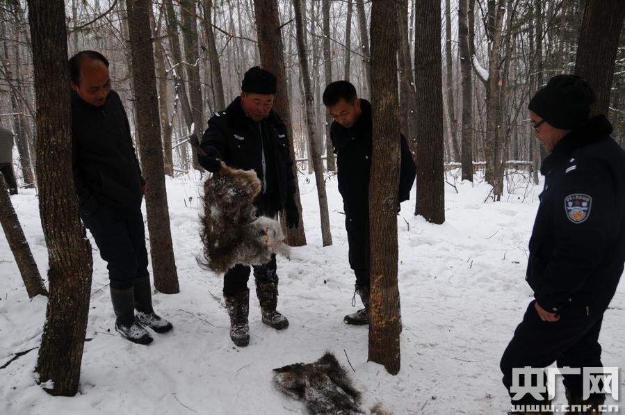 2015年12月14日至19日,白石山林業(yè)局組織了千余人次進(jìn)行的清山、清套行動,避免東北虎在林區(qū)受傷,保護(hù)東北虎的棲息地。在清山清套過程中,護(hù)林員意外發(fā)現(xiàn)了兩頭被東北虎捕食的野豬殘體。野豬殘體一大一小,相隔也就10多米遠(yuǎn)。大野豬都快被掏空了,就剩下一層皮,后腿大部分已經(jīng)消失不見,僅留下部分骨頭。小野豬被吃了一半。護(hù)林員還發(fā)現(xiàn),在勝利河林場出現(xiàn)疑似東北虎追趕一群狍子的腳印。