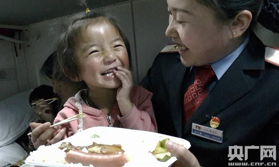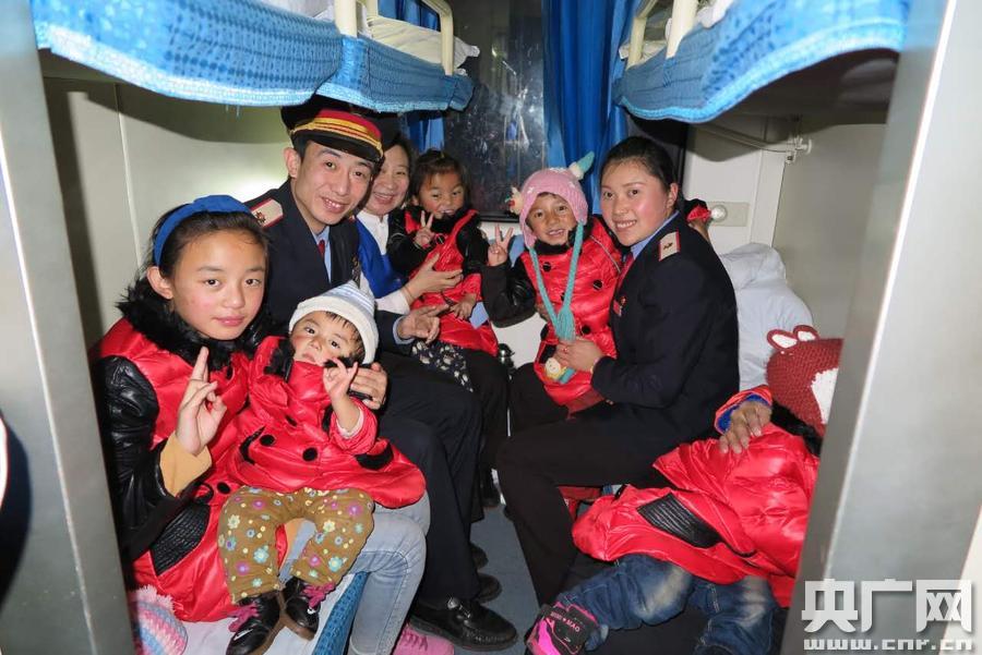 1月7日下午,王孜慧與青島客運(yùn)段和西寧站取的聯(lián)系,由此一場(chǎng)愛(ài)心傳遞大幕將從青海拉開(kāi)帷幕….. 因?yàn)橄膫}(cāng)更群買(mǎi)的臥鋪不相鄰,而且有上鋪和中鋪,Z274列車(chē)長(zhǎng)張博海特意給這11人安排到了兩個(gè)相鄰的臥鋪區(qū),還安排了兩位年輕列車(chē)員帶著玩具,一路專門(mén)照顧孩子們一起玩耍。