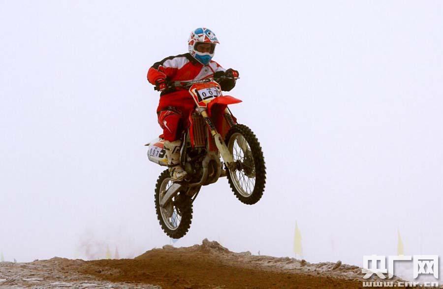 雪地越野現(xiàn)場(chǎng)狂野馳騁的摩托車