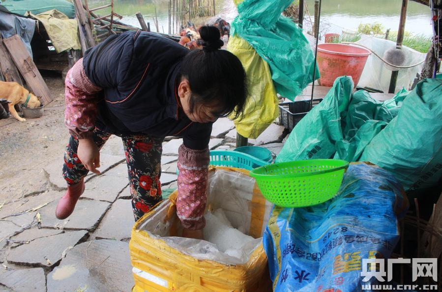 記者在欽州市欽南區(qū)康熙嶺鎮(zhèn)白雞村采訪時(shí)也看到,部分養(yǎng)殖戶拉來(lái)了大量冰袋,正將凍死的羅非魚(yú)進(jìn)行冰凍處理。一名下鄉(xiāng)統(tǒng)計(jì)災(zāi)情的欽南區(qū)干部看著被凍死的羅非魚(yú),便買了幾條。“很便宜,先買回去,能吃就吃,不能吃再丟掉!