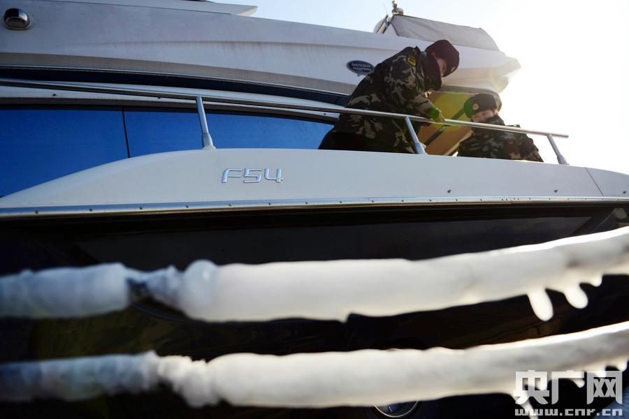 2015年,大連邊防支隊推動大連市政府頒布了全國第一部關(guān)于游艇管理的政府規(guī)章《游艇治安邊防管理規(guī)定》,作為大連邊境海岸上的一只警花隊伍,大連邊防女子巡警隊加強(qiáng)春節(jié)治安巡邏,守衛(wèi)著游艇碼頭的平安(央廣網(wǎng)發(fā) 陳宗瑞攝)