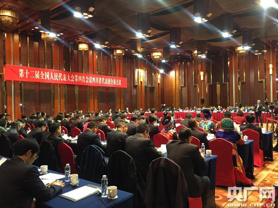 央廣網(wǎng)北京3月8日消息(記者韓民權(quán))8日上午,第十二屆全國人民代表大會第四次會議四川省代表團全體會議在北京國際飯店舉行,繼續(xù)審議政府工作報告,同時審查計劃報告、預(yù)算報告。會議向媒體開放,代表們現(xiàn)場回答了國內(nèi)外記者的提問。