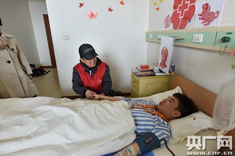 大連捐獻(xiàn)造血干細(xì)胞志愿者俱樂部的志愿者為已躺在病床3個(gè)小時(shí)的高添銘同學(xué)按摩