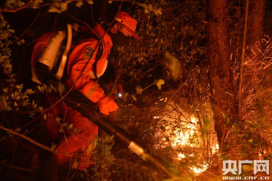次日凌晨1時15分,該支隊支隊長張洪順帶前指及參戰(zhàn)官兵到達火場。經(jīng)堪察,林火為中低強度地表火,植被以云南松和密灌為主。在風力和地形的影響下,火線正向東北方向蔓延,如不及時控制火勢,將對周邊林區(qū)和當?shù)厝罕娚敭a(chǎn)安全造成嚴重威脅。來不及多想,5分鐘后,張支隊長迅速將參加官兵分為兩個戰(zhàn)斗分隊,采取“兩翼推進,鉗形夾擊”的戰(zhàn)法,利用常規(guī)滅火機具與水泵滅火配合的方法開展撲打。一班班長張吉洪帶水泵分隊在火場西北側打開突破口后風水結合、泵車并用,采取“一線平推”戰(zhàn)術撲打迅速控制火勢;由于風力較大,火勢較猛,二班班長陳金龍帶攻堅分隊對肆虐的大火進行4次沖鋒,2名官兵手、臉被荊棘刺傷,戰(zhàn)斗卻一直沒有停息。5月1日4時00分,經(jīng)全體官兵近4小時連夜奮戰(zhàn),大火被全部撲滅。