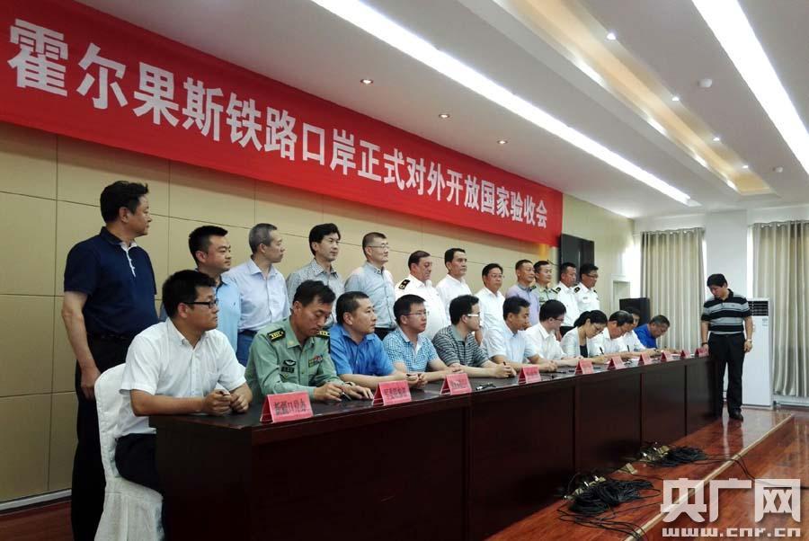 驗(yàn)收組一致認(rèn)為,霍爾果斯鐵路口岸檢查檢驗(yàn)場所及配套設(shè)施已經(jīng)建成,現(xiàn)場監(jiān)管條件基本符合有關(guān)規(guī)定,查驗(yàn)單位業(yè)務(wù)用房滿足查驗(yàn)工作需要;人員能夠承擔(dān)口岸對外開放后的檢查檢驗(yàn)任務(wù);有關(guān)軍事設(shè)施保護(hù)措施已落實(shí)到位,驗(yàn)收組同意霍爾果斯鐵路口岸對外開放通過國家驗(yàn)收。