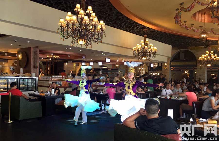 海爾巴格青島店的新疆民族歌舞表演非常吸引人(央廣網(wǎng)記者 張雷 攝)