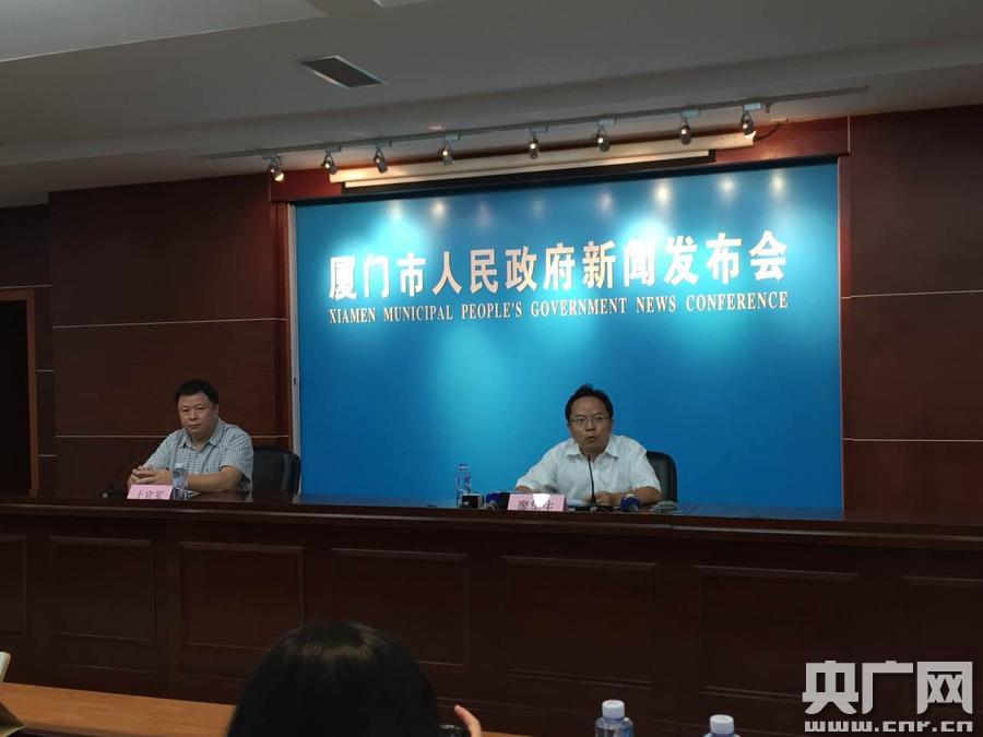 廈門市政府秘書長廖華生通報(bào)災(zāi)后重建的簡要情況(央廣網(wǎng)發(fā) 呂貝娜 攝)