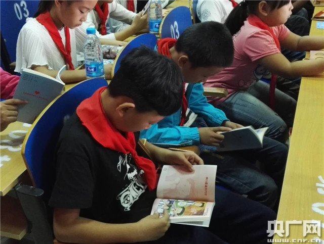 一個(gè)孩子拿到漫畫書就認(rèn)真地看了起來(lái)。(央廣網(wǎng)記者 李凡 攝)