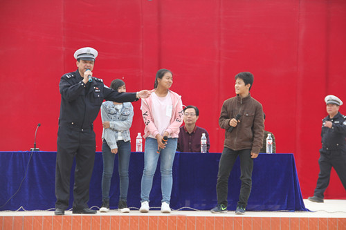 在講座過(guò)程中,桂平交警根據(jù)木根初中地處玉桂二級(jí)公路邊、路況復(fù)雜的現(xiàn)狀,深刻闡述提高交通安全防范意識(shí)的重要性,以近期本市某鎮(zhèn)初中三名學(xué)生的交通違法行為導(dǎo)致交通事故而身亡的慘痛案例為警示教訓(xùn),告誡廣大青少年學(xué)生要嚴(yán)守交通法規(guī),增強(qiáng)交通安全意識(shí),努力做到文明出行和安全出行。桂平交警具體講解了目前轄區(qū)的道路交通安全形勢(shì),深入分析了發(fā)生交通事故的原因及危害,向廣大師生講解如何做到安全步行,提醒出行騎自行車以及乘車的注意事項(xiàng)。在講座過(guò)程中,桂平交警還對(duì)道路交通安全常識(shí)進(jìn)行普及,以有獎(jiǎng)問(wèn)答的形式調(diào)動(dòng)學(xué)生參與交通安全知識(shí)學(xué)習(xí)的積極性。(注:圖片由廣西桂平市公安局交警大隊(duì)提供)