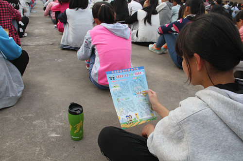 圖為學(xué)生在學(xué)習(xí)交通安全常識(shí)