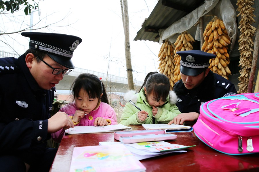 當(dāng)天,民警在和老人交談中得知他們的兒子、兒媳年底才能回家,為讓老人小孩過上一個(gè)溫馨的“暖”年,王鵬帶著民警為他們收拾房間,張貼對(duì)聯(lián)、“!弊,當(dāng)大紅的對(duì)聯(lián)貼上門楹,小慧姐妹兩拿著民警送來的“!弊,激動(dòng)的在大門口拍照,要把照片發(fā)給爸爸、媽媽看。