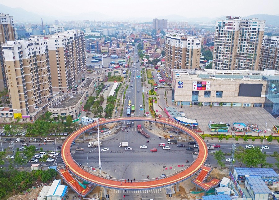 空中俯瞰廈門(mén)首座環(huán)形天橋(央廣網(wǎng)發(fā) 陳嘉新攝) 據(jù)悉,該環(huán)形天橋位于廈門(mén)市同安區(qū)環(huán)城西路和同蓮路的十字交叉路口,是同安區(qū)為民辦實(shí)事項(xiàng)目之一。春節(jié)過(guò)后,環(huán)形天橋還將配備4部垂直電梯,方便市民上下橋。此外,規(guī)劃還預(yù)留了兩座引橋,建成后,該環(huán)形天橋?qū)⑴c周邊的BRT快速公交樞紐站、樂(lè)海城市廣場(chǎng)實(shí)現(xiàn)無(wú)縫銜接。 今后,該天橋還將配套豐富的綠化、夜景工程,設(shè)置同安歷史名人吳必達(dá)等人文展示窗口,使自然景觀與人文景觀相得益彰。