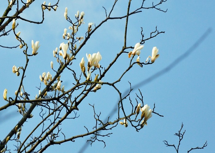 早開的白玉蘭,常常受到暗霜或寒風(fēng)的凍害,導(dǎo)致其花瓣枯吊枝頭,乃至影響果實(shí)的結(jié)實(shí)。希望近日的“倒春寒”不會(huì)凍壞已經(jīng)綻放的白玉蘭花朵,待到晴日,讓游人欣賞到它們?cè)谒{(lán)天映襯下的、朵朵向上的潔白身姿。