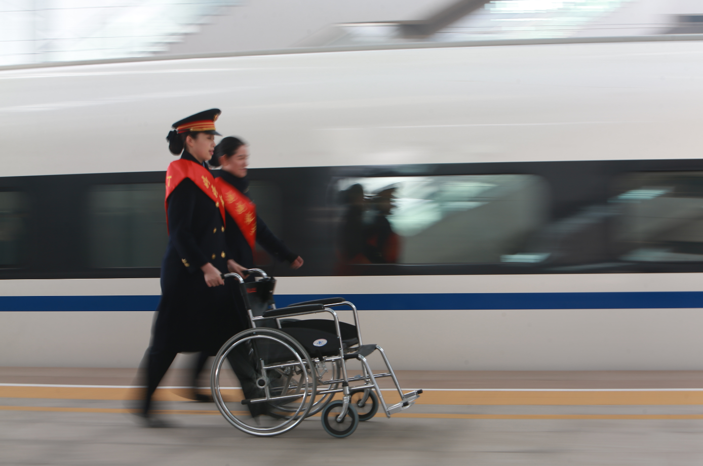太原南站日均接發(fā)旅客6萬(wàn)多人,“婷婷愛心服務(wù)區(qū)”平均每天要服務(wù)重點(diǎn)旅客500多人,既有進(jìn)站上車,也有的有下車出站的;既有需要輪椅的,也有需要擔(dān)架的;既有盲人,也有聾啞人……只要旅客有出行需求,這里就有“婷婷”的愛心服務(wù)。接送老人,一遍遍的進(jìn)出不厭其煩;推送旅客,一次次的上下不計(jì)其數(shù);遇上需要擔(dān)架的旅客,與旅客家屬一起抬著擔(dān)架爬樓梯,直至送到車廂鋪位上……常常顧不上休息,推遲了飯點(diǎn),還不敢多喝水……一個(gè)班下來(lái),她走的路至少都在兩萬(wàn)步以上,最多時(shí)超過了三萬(wàn)多步,常常一天下來(lái),整個(gè)人都像散架了似的酸痛、無(wú)力。