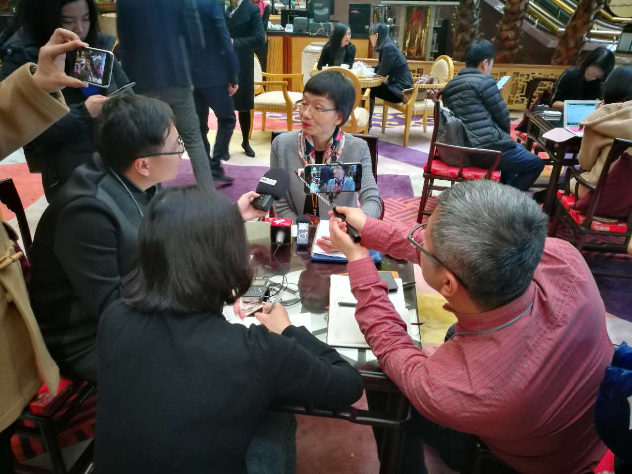 央廣網(wǎng)北京3月3日消息(記者何偉奇 郭翔宇 李強)今天上午,在首都大酒店的會客大廳,來自廣東的部分全國人大代表和前來采訪的記者互動相當熱烈。在各個角落能看到有媒體同行,幾人一組分別和代表訪談和交流。最夸張的一位代表被媒體同行里三層外三層的團團圍住,場面也是相當?shù)膲延^。陳瑞愛,連續(xù)兩屆當選全國人大代表,十年來一直圍繞食品安全問題建言獻策。她說,代表要當就當“厚臉皮”的代表。