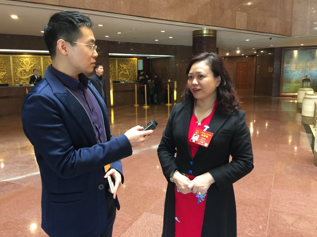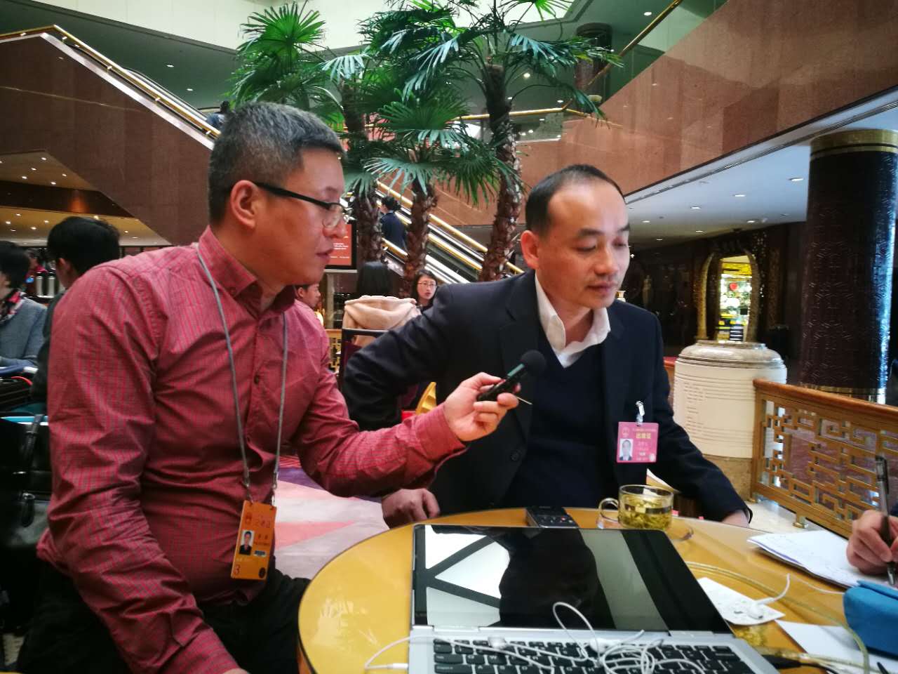 其中一位代表一直接受采訪,一波接著一波,有的時候反復圍繞代表的建議和議案話題說起,代表有有耐心,也很忘我。最后向記者問,有沒有水喝——。