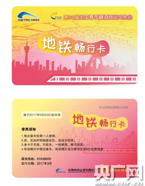 本次糖酒會(huì)“地鐵暢行卡”售價(jià)為60元/張,于2017年4月25日前啟用有效,首次使用起,5個(gè)運(yùn)營(yíng)日內(nèi)可不限次數(shù)、不限距離乘坐地鐵。采用不記名、不充值、不掛失、不回收、不退卡的形式,非卡片質(zhì)量問(wèn)題不更換。