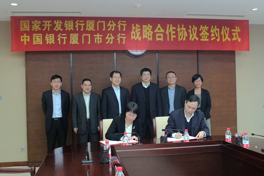 國家開發(fā)銀行廈門分行行長楊愛武、中國銀行廈門市分行行長胡興安出席簽約儀式,國開行廈門分行副行長蔡丹華、中行廈門市分行副行長吳文萍代表雙方簽署協(xié)議。
