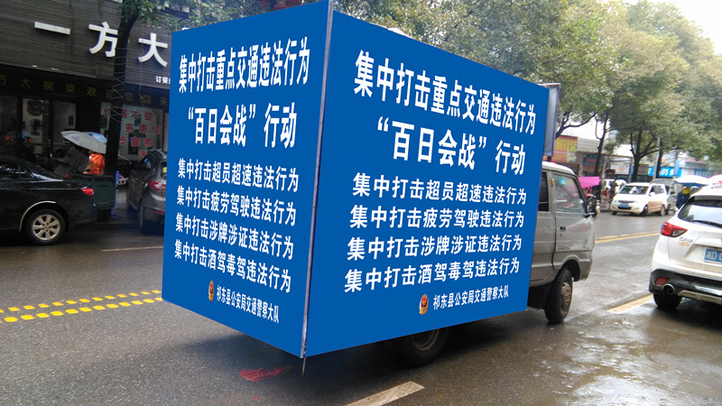 央廣網(wǎng)長沙4月27日消息(記者鄧文輝 通訊員屈金生)在集中整治交通違法行為“百日會戰(zhàn)”中,湖南祁東縣公安局交警大隊安排一輛帶有視頻或喇叭等播放設備的湘警6298警車和租用農用車作宣傳車,以縣城、鄉(xiāng)鎮(zhèn)趕集、農村廟會趕場、民俗活動、物流快遞公司、學校、國省縣道主要路口及學生上下學為重要時段進行巡回宣傳。利用“農村大喇叭”集中持續(xù)宣傳超員超速、疲勞駕駛、涉牌涉證、酒駕毒駕、違法載人、違法占道、無牌無證無保險、農村公路行走和乘坐超員超載車、“黑包車”等農村常見交通違法的危害性。