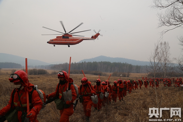 而武警呼倫貝爾市森林支隊(duì)540名官兵從6個方向按照“重兵壓境、梯次投入、快速增援、以快致勝”的作戰(zhàn)理念,采取徒步行軍、機(jī)降、裝甲車運(yùn)兵等方式接近火線,采取一點(diǎn)突破、兩翼推進(jìn),多組聯(lián)合、強(qiáng)攻推進(jìn)等戰(zhàn)術(shù)實(shí)施撲救,目前,火場南線仍在實(shí)施撲救。