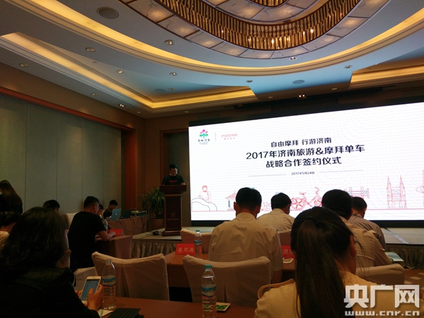 央廣網(wǎng)濟(jì)南5月24日消息(記者林彥銀 通訊員蘭路蕾)5月24日,濟(jì)南市旅游發(fā)展委員會與摩拜單車戰(zhàn)略合作協(xié)議簽約儀式在濟(jì)南喜來登酒店舉行。會上,濟(jì)南市旅游發(fā)展委員會和摩拜單車共同開啟“自由摩拜 行游濟(jì)南”整合營銷系列活動,主要包括面向五大濟(jì)南旅游客源地城市摩拜單車用戶開展的“摩拜達(dá)人騎游濟(jì)南”活動和面向全國摩拜單車用戶開展的“游濟(jì)南地標(biāo) 贏旅游大獎”活動;顒油趯⒋蛟炷Π葜黝}郵局、摩拜主題酒店客房,并發(fā)布“濟(jì)南五大騎行線路”。