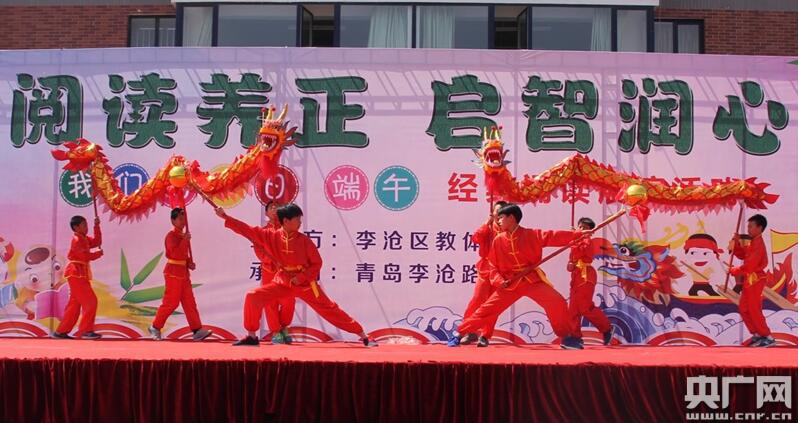 央廣網(wǎng)青島5月30日消息(記者王偉 通訊員余斌)“路漫漫其修遠兮,吾將上下而求索……”,青島市李滄路小學(xué)啟動“我們的節(jié)日-端午”經(jīng)典誦讀展演活動,小朋友們用自編自導(dǎo)的舞臺劇、歌舞、詩歌、吟誦、賽龍舟的方式,緬懷屈原,傳承端午文化,表達家國情懷。
