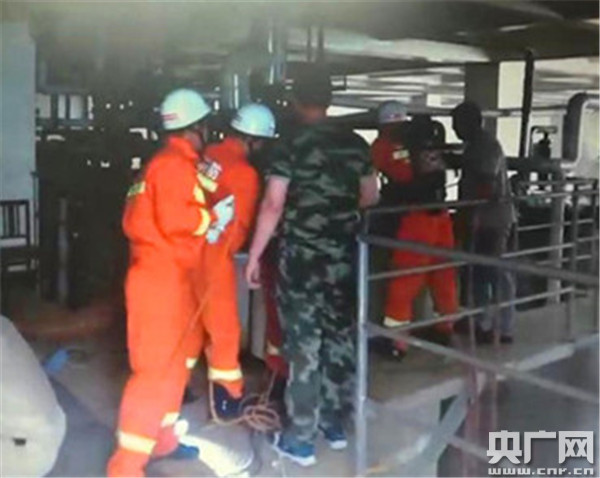 進(jìn)入罐體內(nèi)后,救援人員先將暈倒工人的腰部固定住,避免其在救援時受到二次傷害。經(jīng)10多人共同努力,這名工人最終被成功救出。