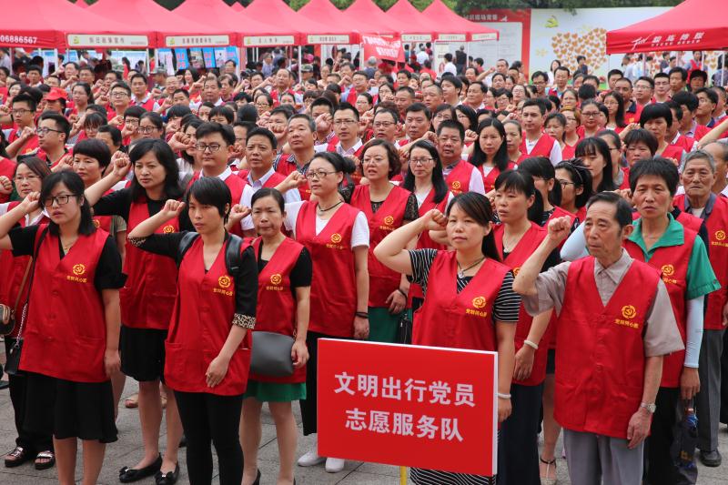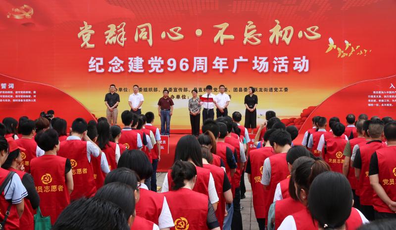 央廣網(wǎng)寧波6月29日消息(記者曹美麗 通訊員陳云松)“履行黨員義務(wù),執(zhí)行黨的決定,嚴(yán)守黨的機(jī)密,對(duì)黨忠誠(chéng)……”今天上午,在寧波市寧海縣潘天壽廣場(chǎng)舉行的“黨群同心·不忘初心”紀(jì)念建黨96周年廣場(chǎng)活動(dòng)上,該縣躍龍街道轄區(qū)內(nèi)的政策宣講黨員志愿服務(wù)隊(duì)、治水剿劣黨員志愿服務(wù)隊(duì)等7支黨員志愿服務(wù)隊(duì)共500多名黨員志愿者集體宣誓,重溫入黨誓詞,并開(kāi)展認(rèn)領(lǐng)微心愿、政策宣講、醫(yī)療保健、愛(ài)心義賣(mài)、便民服務(wù)、愛(ài)心獻(xiàn)血等現(xiàn)場(chǎng)志愿服務(wù),獲得了群眾的點(diǎn)贊。
