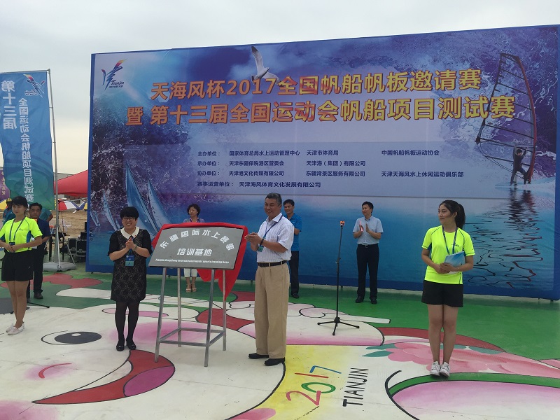 央廣網(wǎng)天津7月26日消息(記者夏震宇 蘇平 通訊員劉鵬 薛力強)今天下午,由國家體育總局水上運動管理中心、天津市體育局、中國帆船帆板運動協(xié)會主辦,天津東疆保稅港區(qū)管委會、天津港(集團)有限公司承辦,天津港文化傳媒有限公司、東疆灣景區(qū)服務(wù)有限公司、天津天海風(fēng)水上休閑運動俱樂部有限公司協(xié)辦的“天海風(fēng)”杯2017全國帆船帆板邀請賽暨第十三屆全國運動會帆船項目測試賽在美麗的天津東疆灣景區(qū)開賽,本次全國邀請賽暨測試賽的場地也將是全運會帆船帆板項目的正式比賽場地。國家體育總局水上運動管理中心副主任張小冬、天津市體育局副局長李桂峰、天津港集團公司黨委副書記王存杰、天津東疆保稅港區(qū)管委會副主任宮麗艷、天津市體育局副局長張欣等出席開幕式,