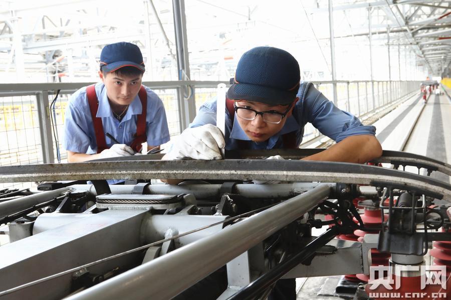 成都動車段:受電弓檢修,護(hù)衛(wèi)動車“生命線”。(周兵 攝)