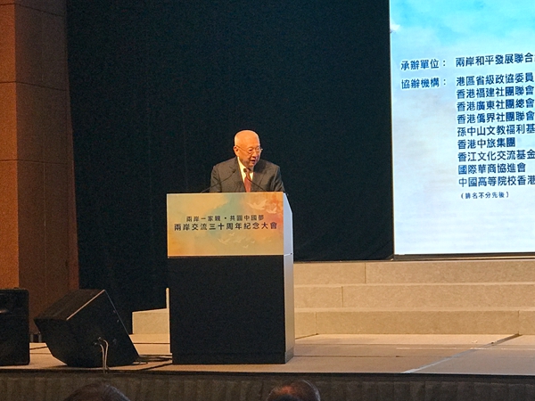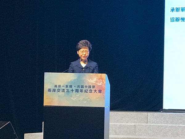 央廣網(wǎng)香港9月5日消息(記者周偉琪)“兩岸一家親·共圓中國(guó)夢(mèng)”的兩岸交流三十周年紀(jì)念大會(huì)昨天(4日)在香港會(huì)展中心舉行,兩岸四地各界近千人出席活動(dòng)。全國(guó)政協(xié)副主席董建華、香港特別行政區(qū)行政長(zhǎng)官林鄭月娥、國(guó)務(wù)院臺(tái)灣事務(wù)辦公室主任張志軍等出席大會(huì)并分別致辭。